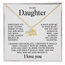 Show your love for your daughter with this amazing necklace with an emotional and beautiful message. Your daughter will love it!