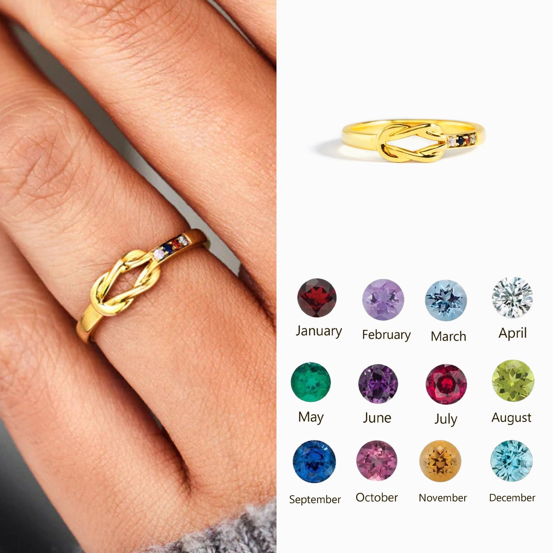 This personalized birthstones Square Knot Ring is a perfect gift for a mother, grandmother, family or anyone who wants a reminder of her loved ones! It's fun to choose the colored stones to represent all of the people she cares about.
