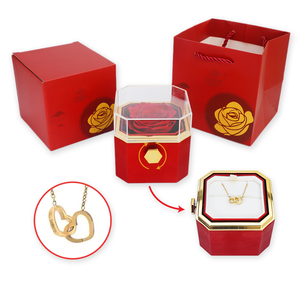 Our eternal rose box with hidden personalized necklace is a gift that lasts a lifetime. Featuring a real preserved rose that will last forever, this gift is the perfect symbol of eternal love.